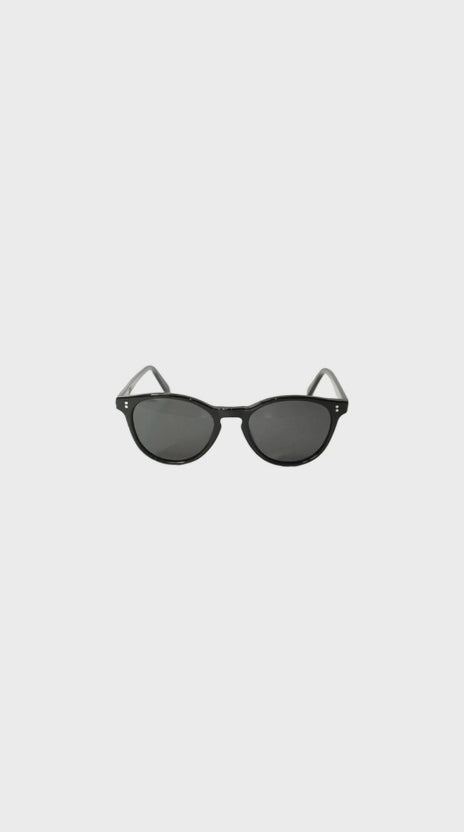 Featuring black lenses set in a glossy black round frame for a bold, timeless and minimalist look.